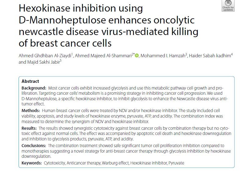 Hexokinase inhibition using D‑Mannoheptulose enhances oncolytic newcastle disease virus‑mediated killing of breast cancer cells د. احمد غضبان ثعبان الزيادي 5 سنوات ago https://scholar.google.com/citations?view_op=view_citation&hl=en&user=IbHlPhIAAAAJ&citation_for_view=IbHlPhIAAAAJ:u5HHmVD_uO8C