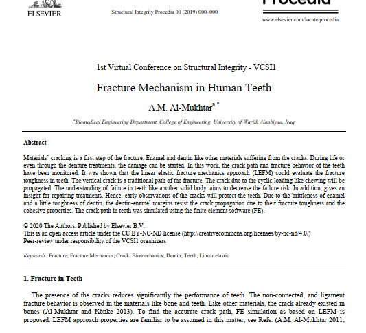 Materials’ cracking is a first step of the fracture. Enamel and dentin like other materials suffering from the cracks. During life or even through the denture treatments, the damage can be started. In this work, the crack path and fracture behavior of the teeth have been monitored. It was shown that the linear elastic fracture …